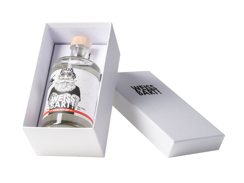 Diese Geschenkverpackung eignet sich für den halben Liter Weissbart-Gin.