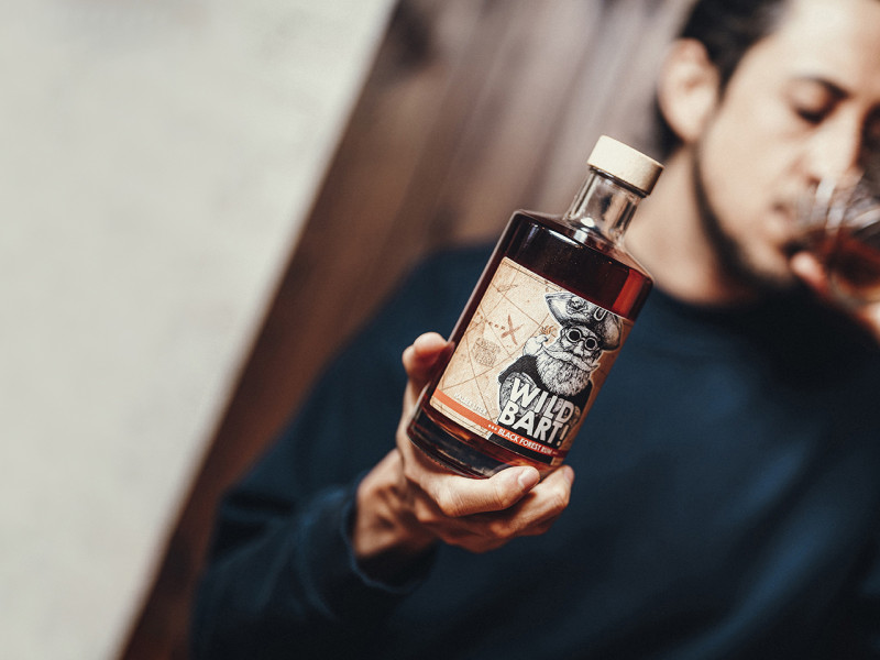 Die vorherige Nutzung unserer Rumfässer für in Kirschwasser eingelegte Sauerkirschen oder auch feinen badischen Zwetschgenlikör spielt für den Wildbart! eine große Rolle. Wir verzichten gern auf Farbstoffe oder künstliche Aromen – und nutzen stattdessen gern die Erinnerungen an jene Obstbrände, die sich im Holz der Fässer verewigt haben und beim Finish unserem Wildbart!-Rums den entscheidenden Twist geben. Aus diesem aromatisierten Holz, mit dem der Wildbart am Ende seiner Lagerzeit zu einem echten Schwarzwälder Unikat reift, stammt schließlich auch die rötliche Färbung sowie die leichte Süße, die unseren Rum so leicht, lecker und unbeschwert trinkfähig macht.